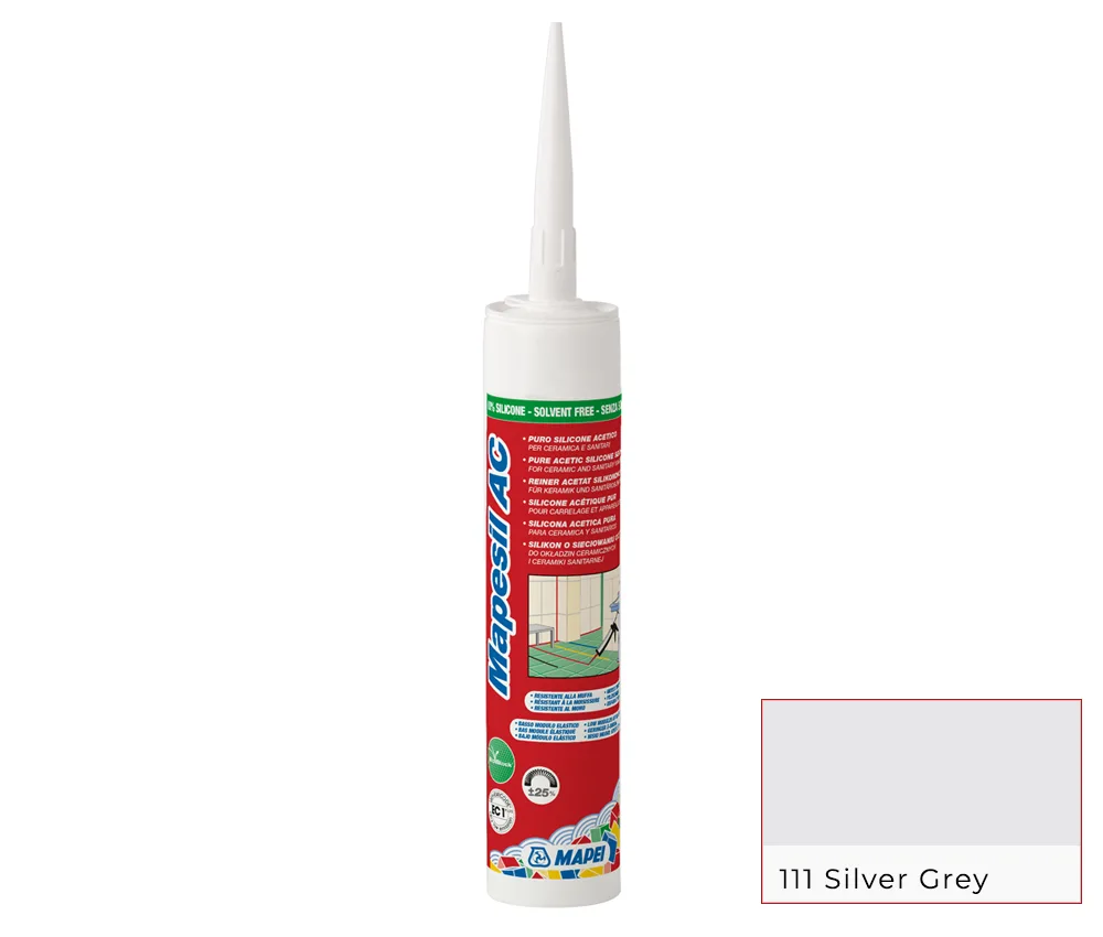 MAPESIL AC, καθαρή σιλικόνη οξικού πολυμερισμού χωρίς διαλύτες. Ιδανική για κεραμικά πλακίδια, σε εσωτερικούς και εξωτερικούς χώρους, για υγρό περιβάλλον και πισίνες. Για ανθεκτικό σφράγισμα που παραμένει αναλλοίωτο στον χρόνο.